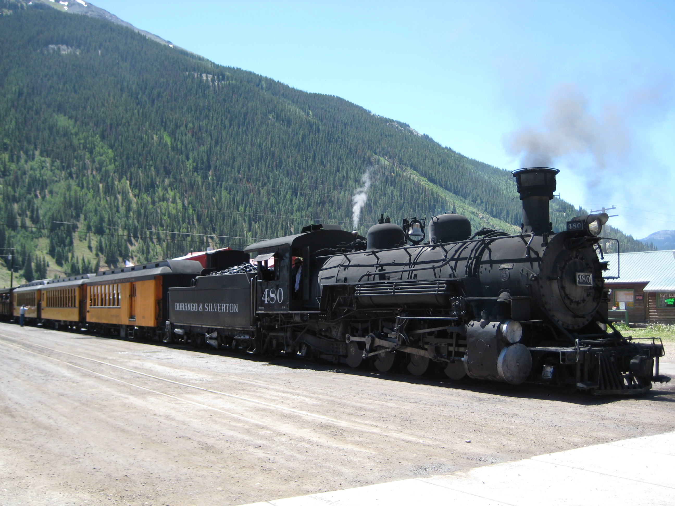 Silverton was cute, but the main reason we went is because there is an old narrow-gauge train that you can take to Durango. It’s one of the only trains of its kind left, and it’s old and little and still runs on coal. As a side note, if you happen to ever venture out onto such a train, it’s not the best plan to wear white linen pants, not that I’m speaking from experience or anything. That whole ‘runs on coal’ bit pretty much means that it blows smoke, ash and embers all over the passengers, so we were all quite dirty when we finally got there. The cars are open and it takes 3 1/2 hours to go about 35 miles, which was an hour and a half too long for me, but the views are amazing.