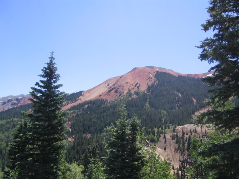Want to give yourself a heart attack? Take a drive to Silverton, which is a tiny ‘old west’ style town about 40 miles south of Ouray. You have to go over a huge pass to get there and there is no guardrail and no room for error. The pictures below do not do justice to how flippin’ steep the cliff is . It’s all tight little switchbacks with no more than 6 inches of shoulder room and it’s terrifying. I can just imagine the tourists from flat lands (say…Nebraska or some such place) getting on this road and just freaking out.