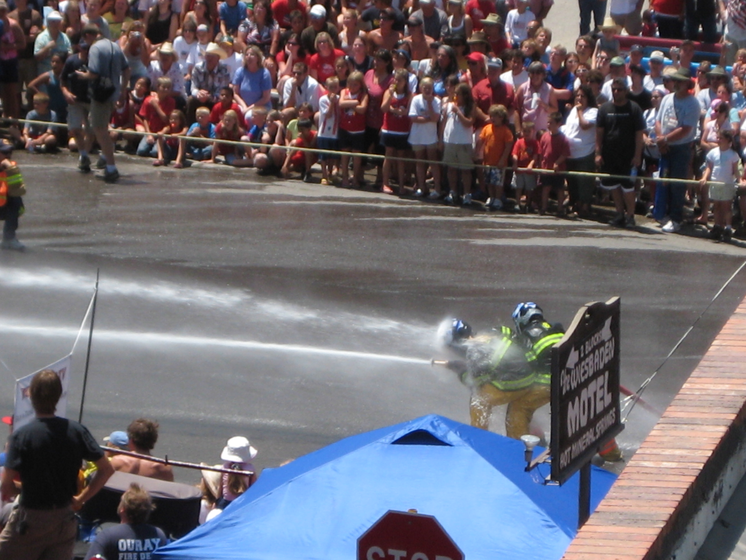 The 4th of July in Ouray is total madness. We started by going to a crack-of-dawn pancake breakfast to raise funds for the local search and rescue teams. Stellar pancakes and the whole town comes out so if you aren’t there early, well let’s just say the last few people got only the leftover nubbins of some of the best bacon I’ve ever had. Following the breakfast there was a dinky, yet somehow charming, little parade and then finally, the fire hose fights.