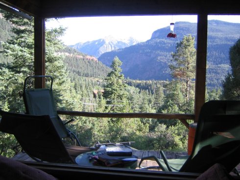 After 8 hours of driving we have finally reached Ouray, Colorado. It’s a teeny mountain town in the San Juan range of the Rocky Mountains, and it has to be one of the most beautiful spots in the state. Neil’s family has a cabin on top of a ridge that they built nearly 60 years ago and the view is incredible! The cabin itself is a very small, very typical mountain cabin and it has a big porch for just sitting around and taking in the scenery.