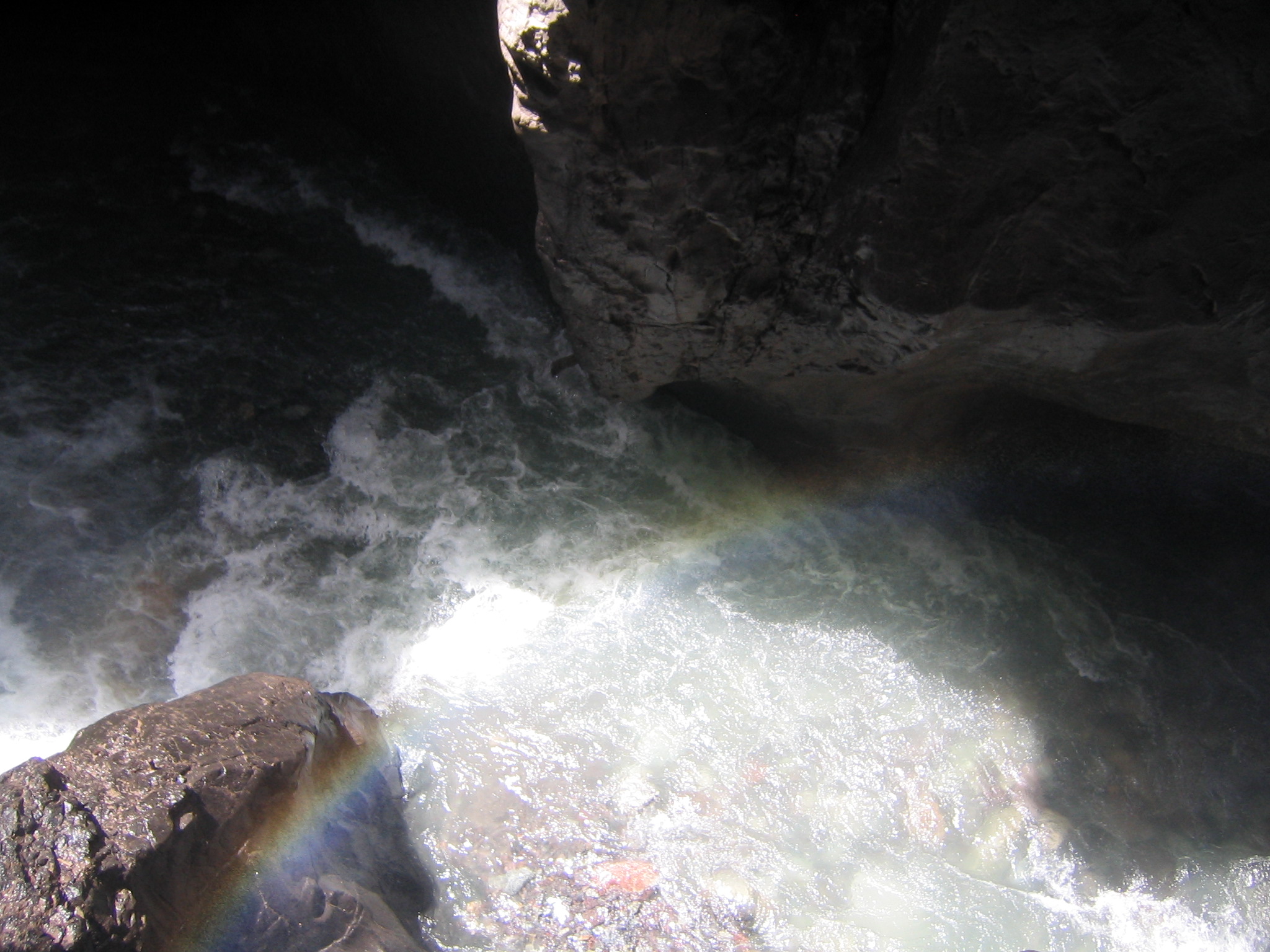 The last full day we were in Ouray we went to go see Box Canyon Falls, and Yankee Boy Basin, both right outside of the town. Box Canyon Falls is a tiny little hike away from town that leads to a waterfall.  The water flows through these huge holes in the rock that are almost sculpture like.  You can get pretty close to the falls and there are some great views through the narrow little canyon.