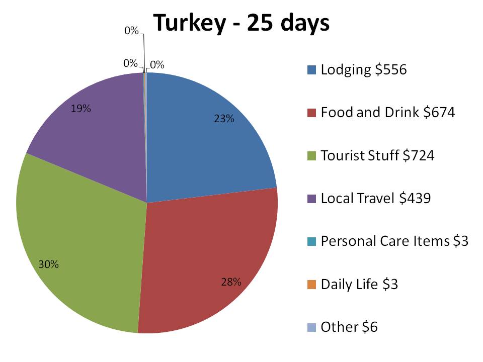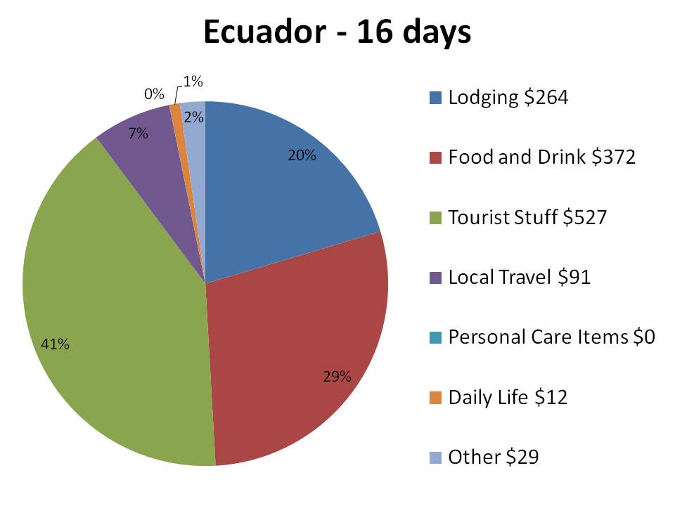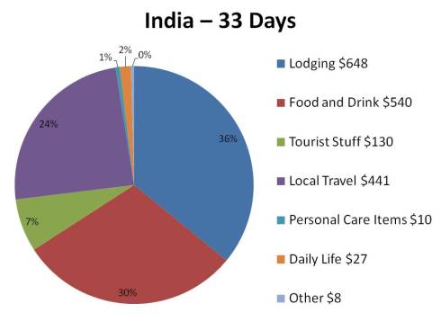 Australia was a challenge on our budget, partly because it’s really expensive, and partly because we were travelling with family for most of the trip. We took a lot of cross-country flights, which bumped up our budget in a major way (you can see from the chart the travel costs were HALF our budget). Our accommodation costs were also significantly higher than if we had been on our own, though we did share rooms or get family rooms most of the time and we had two weeks of basically free nights from time share exchanges and hotel points from my mom.